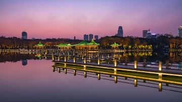 【汉秀剧场】汉秀剧场坐落在武汉东湖之滨、水果湖畔,是武汉的地标之一。整体外观的设计灵感来源于中国传统文化精髓“红灯笼”,夜晚亮灯时格外漂亮。除了参观时尚独特的建筑建筑,剧场内每天都有精彩的“汉秀”水上大秀,十分值得一看。
